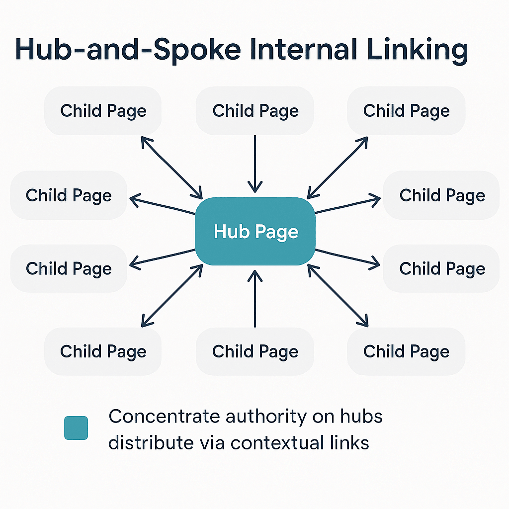 Use hubs to concentrate authority, then distribute it with smart internal links.